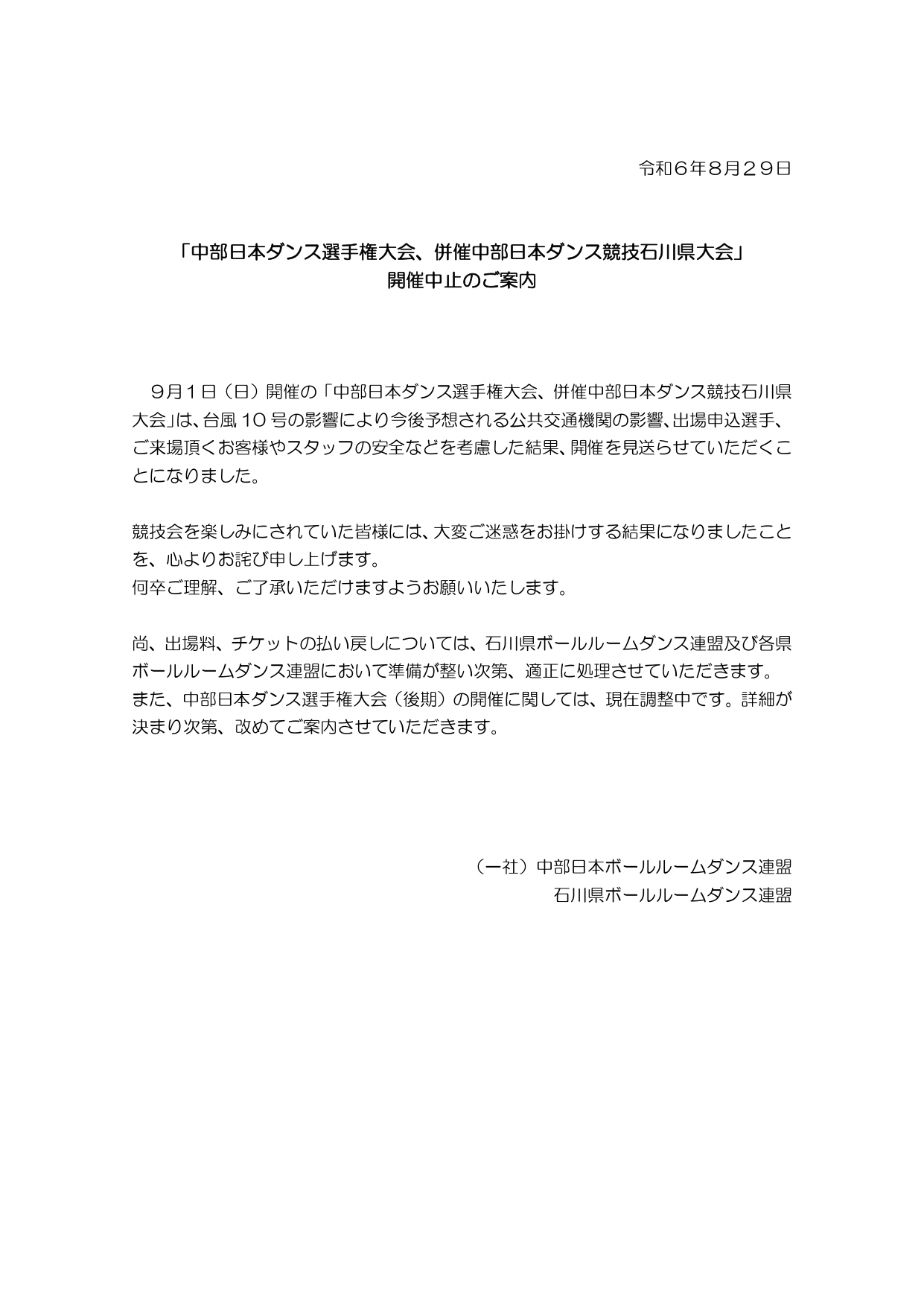 HOME > 社交ダンス > 社交ダンス 【中止】石川県大会 9月1日(日) 投稿日:2024年8月30日 残念… (--;) ブログランキング一日一回の応援クリックが、ブログ更新の励みになります! Twitter Share Pocket Hatena LINE コピーする -社交ダンス