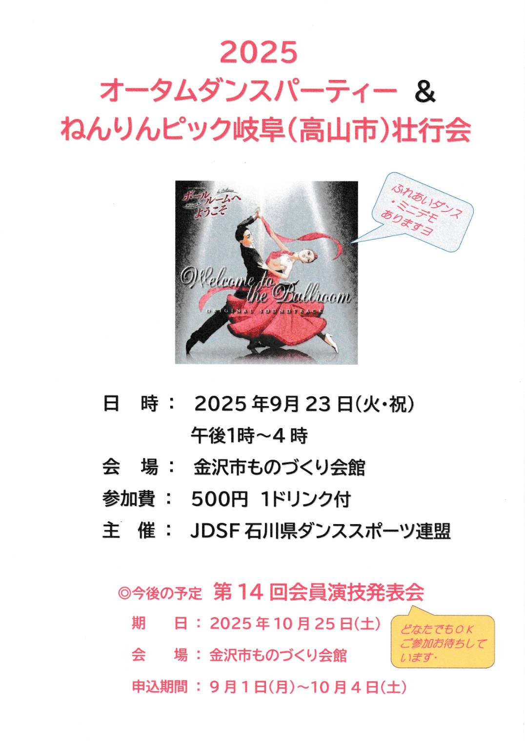 11月9日(日)石川県アマチュア地域協会 スポーツダンスフェスティバル