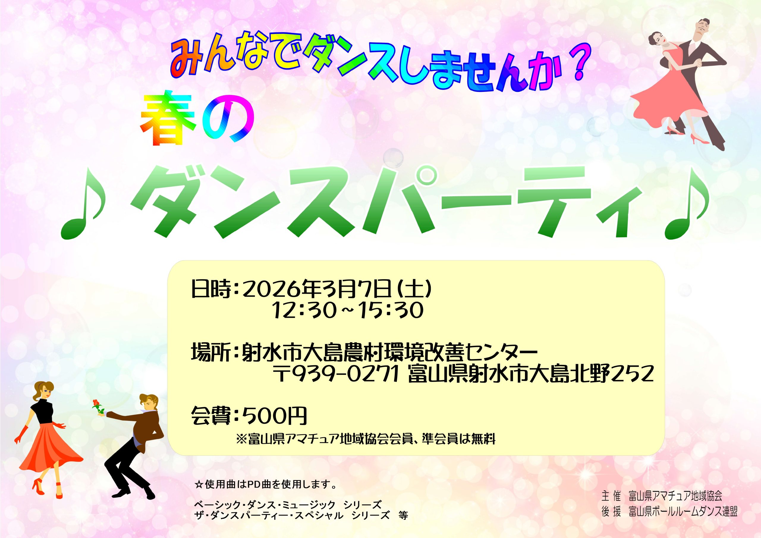 ダンス仲間をお誘い合わせの上、多数の参加を心よりお待ちしています。