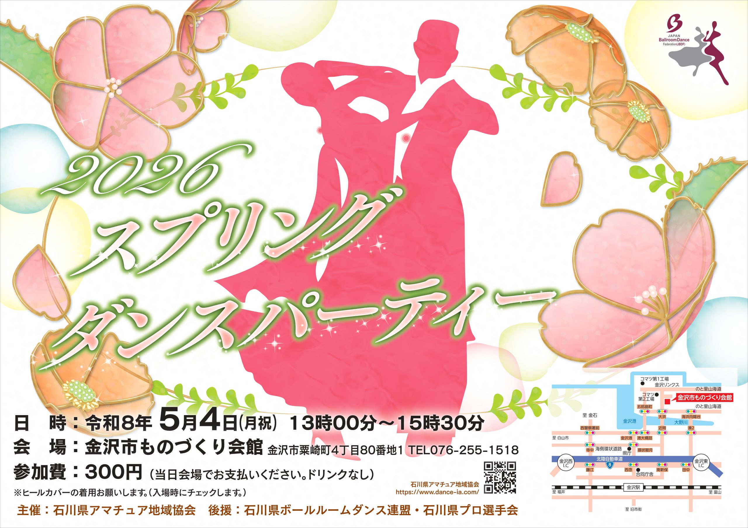 ※ 石川県アマチュア地域協会の会員の方はスプリングダンスパーティーの前に総会(11:00~)を行います。10:40までに集合お願い致します。